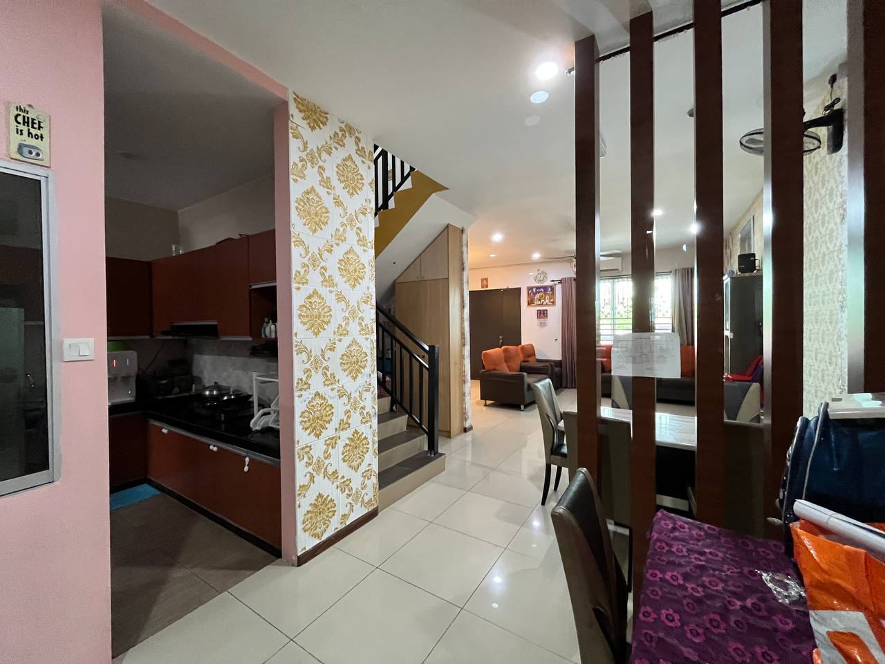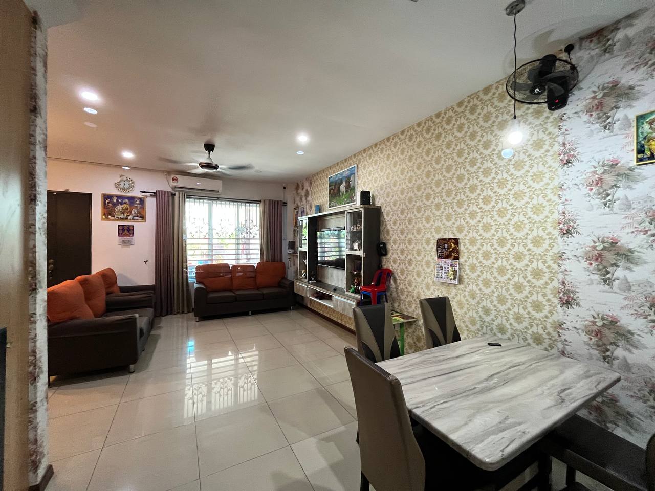 • Dining table, sofa, 2 aircond unit, water heater, kitchen hood and stove.